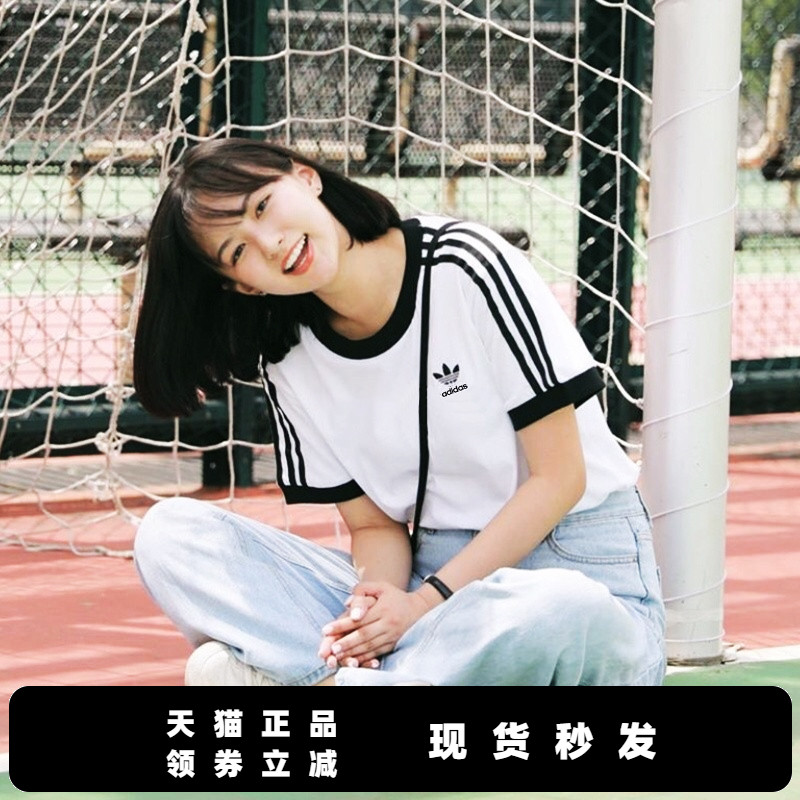 阿迪达斯三叶草女子年秋冬季打底圆领宽松运动短袖T恤 ED7483